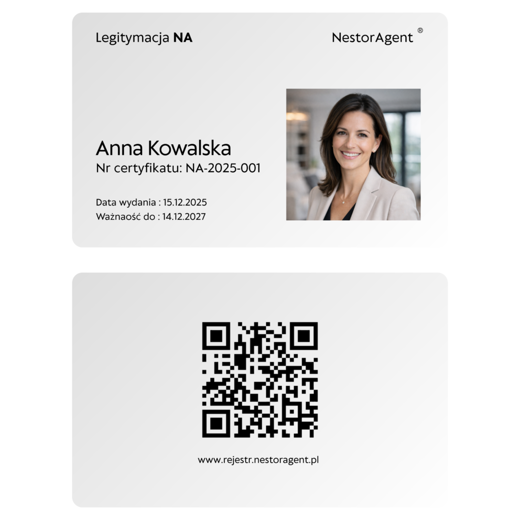 Certyfikat NestorAgent® stanowi niezależne, instytucjonalne potwierdzenie spełniania określonego standardu zawodowego w obszarze pośrednictwa nieruchomościami.